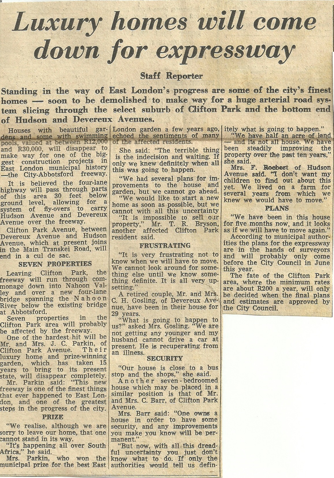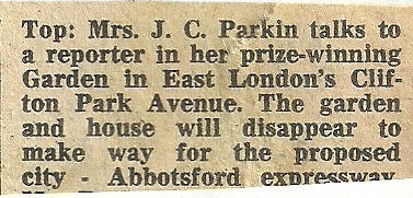 I still remember the acute sense of shock in our household on hearing that a major highway was to be built right through our neighbourhood and that our house, being directly in its path, along with 6 others, was going to have to be demolished. It must have broken my parents’ hearts and still to this day, on the rare occasion I find myself back in East London, I can’t help driving down that crudely truncated little road to the edge of the chasm through which the freeway now runs and thinking about the magical place that once existed there and the loss my family experienced through its obliteration.