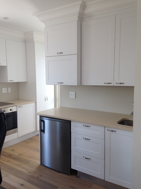 The counter tops in the cottage, guest suite and main house are in Caesarstone, colour; panecotta. Although I think chose these handles, I now want to change them…