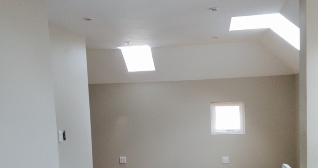 As soon as the cottage is finished and ready for occupation, we’re moving the pressure onto to the guest suite.  Once that is complete, we might have a place to stay when travelling back to Johannesburg for site meetings etc.  The photographs do not show the sloping ceilings very clearly but you  can work out where the slope begins from where the white paint starts.
