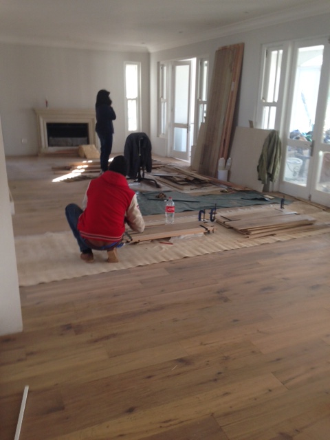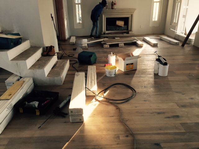 One the plus side, Oggie, the flooring company, after being deferred several times, was able to start this week although not in the peaceful, cleared environment I’d hoped for. They have laid the floors in the library and most of the living room and hope to get to the kitchen tomorrow. They have also almost completed the upstairs flooring and it’s all looking beautiful. Now we have to hope that the wood doesn’t get damaged by workmen – who should have been finished weeks ago – tramping all over it. They still have to do the stairs but until all other upstairs work is done, they are unable to start.