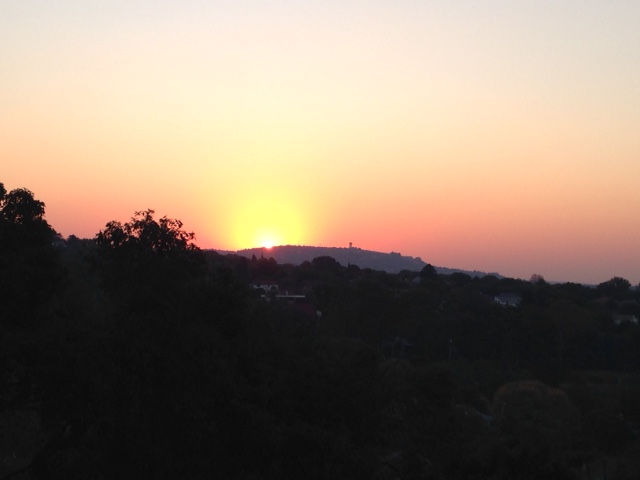 We’ve been really fortunate in having the use of a friend’s lovely home set high up on Westcliff Ridge with beautiful views out over the densely forested northern suburbs of Johannesburg and sunsets so spectacular as to take our breath away. Our plan was to be installed – even if camping – in our new house by the time our host returns from his travels on the 4th of July.