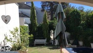 Because we often visit Cape Town with ‘Daisy Dog’, the strip of lawn was laid with her needs in mind. If the drought persists and the grass struggles, it is at least almost out of sight.
