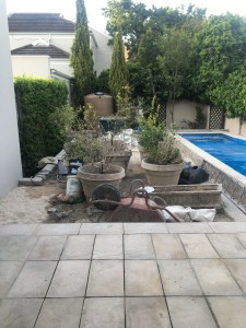 We started off with a raised veranda area and three steep steps down to the lawn and pool level.  Having learned from our Parkhurst home what a difference it makes to both flow and visual impact to have everything on more or less one level, we decided to raise the whole garden up to the height of the veranda.